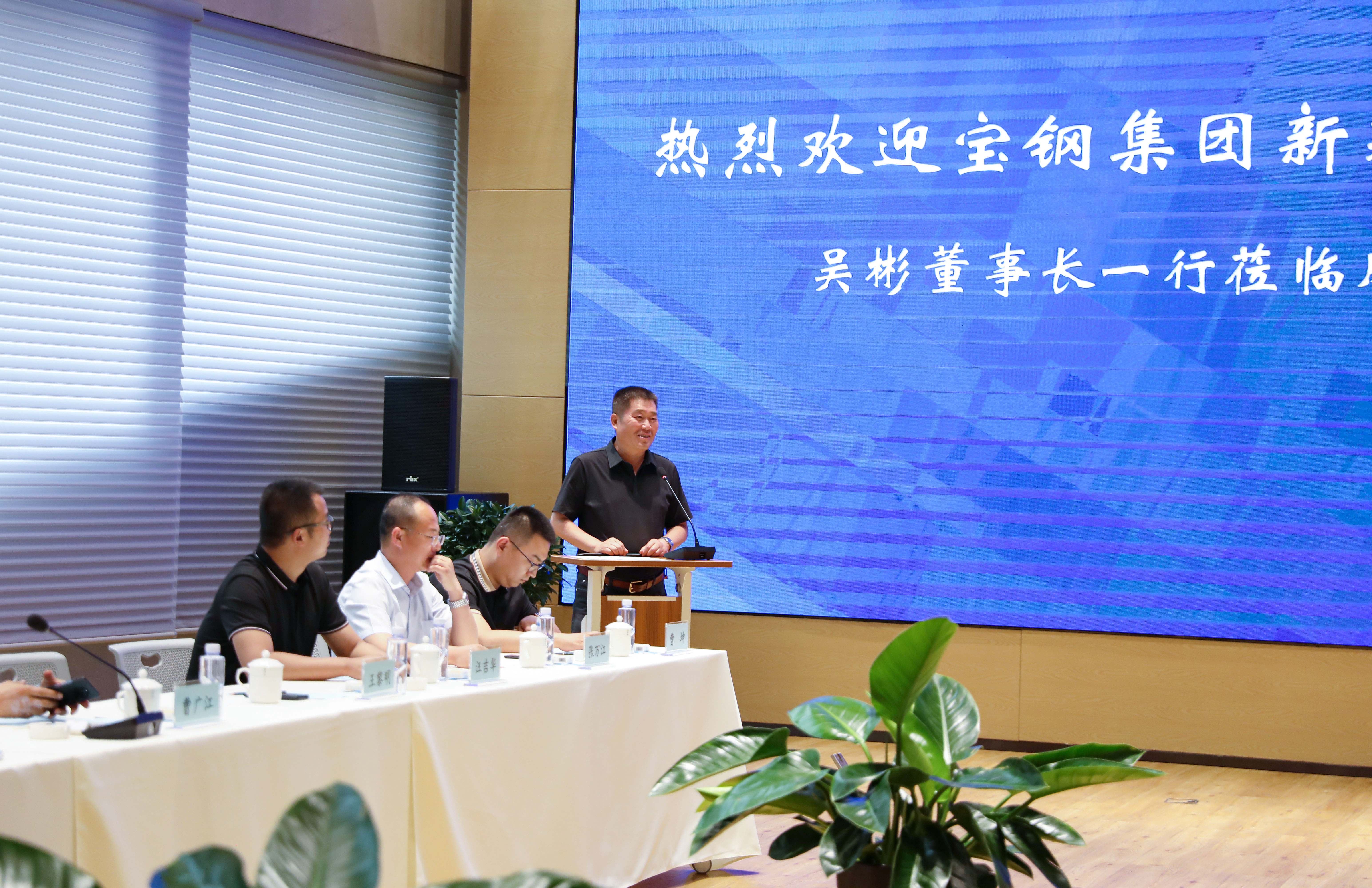 曹廣江董事長代表寧夏鋼鐵集團(tuán)3000多名員工對吳彬董事長一行表示熱烈歡迎,向客人介紹了集團(tuán)各個子公司經(jīng)營現(xiàn)狀和集團(tuán)60年發(fā)展歷程。曹董事長強(qiáng)調(diào):回顧60年的發(fā)展,能有今天的成績,一是要感謝這個團(tuán)隊(duì),團(tuán)隊(duì)所有成員,始終堅(jiān)持“以鋼鐵意志做人、以改革精神創(chuàng)業(yè)”的精神,專一、專心、專業(yè)做精做實(shí)做強(qiáng)普鋼,帶領(lǐng)企業(yè)不斷發(fā)展壯大。二是要感謝行業(yè)同仁的幫助,寧夏鋼鐵集團(tuán)在發(fā)展過程中包括寶武集團(tuán)在內(nèi)的很多鋼鐵企業(yè)對寧鋼提供了諸多寶貴無私的支持和幫助,促進(jìn)了寧鋼今天的發(fā)展。三是要感謝文化的凝聚力,我一直認(rèn)為幸福是用來分享的,寧夏鋼鐵集團(tuán)的發(fā)展也始終堅(jiān)持分享理念,打造了“為更多人創(chuàng)造更多的幸福、利他利己價(jià)值觀、以奮進(jìn)者為本人才觀”等企業(yè)文化,凝聚了一大批有志之士和奮斗青年,推動了寧夏鋼鐵集團(tuán)的快速發(fā)展。特別是智能鋼筋制造項(xiàng)目,是一項(xiàng)利國利民的長遠(yuǎn)工程,也是推動建筑行業(yè)轉(zhuǎn)型升級、朝著綠色化、標(biāo)準(zhǔn)化、規(guī)范化發(fā)展的好事,作為鋼鐵行業(yè)從業(yè)人員,我們有義務(wù)、有責(zé)任推動此項(xiàng)工作向著更快更好方向發(fā)展,希望雙方緊密團(tuán)結(jié)、精誠合作、干出成效、實(shí)現(xiàn)共贏。